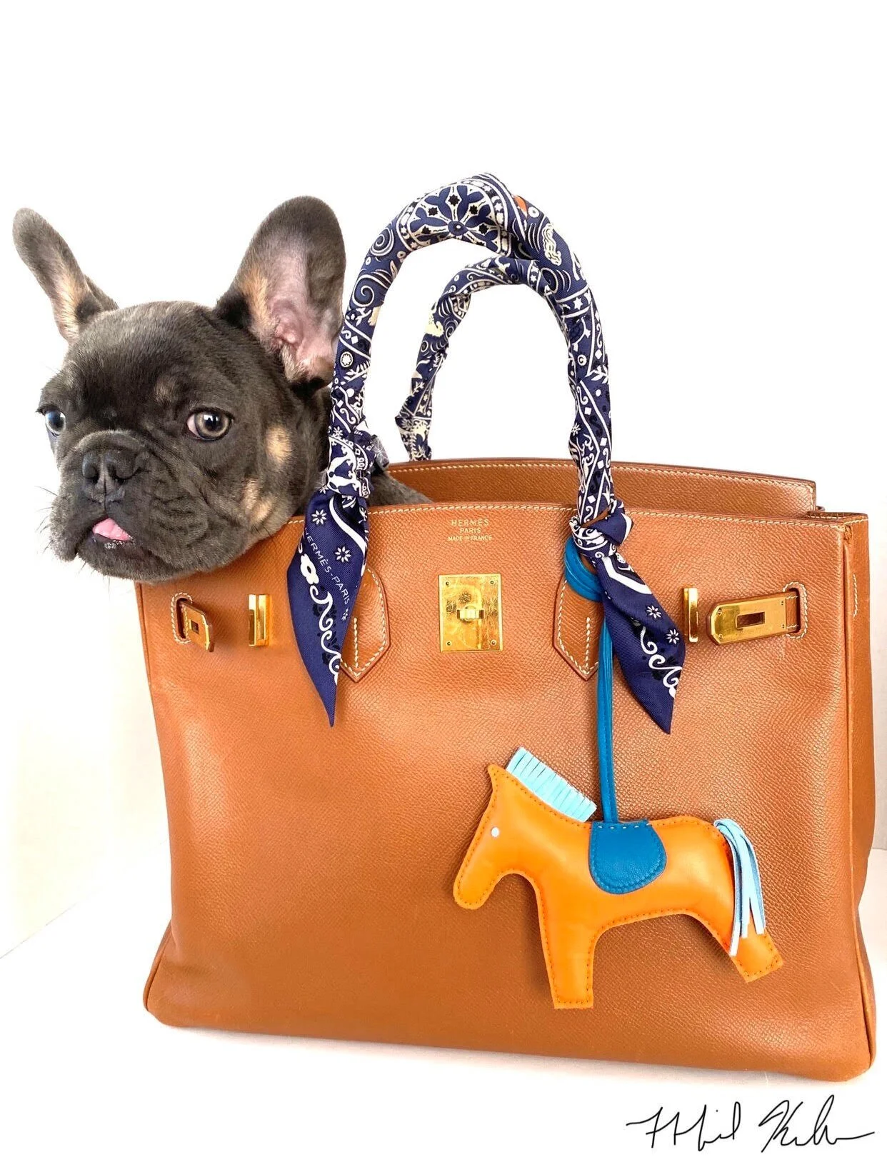 Frenchie Friday :: Gus, The French Bulldog, in Hermes Birkin Bag Artwork