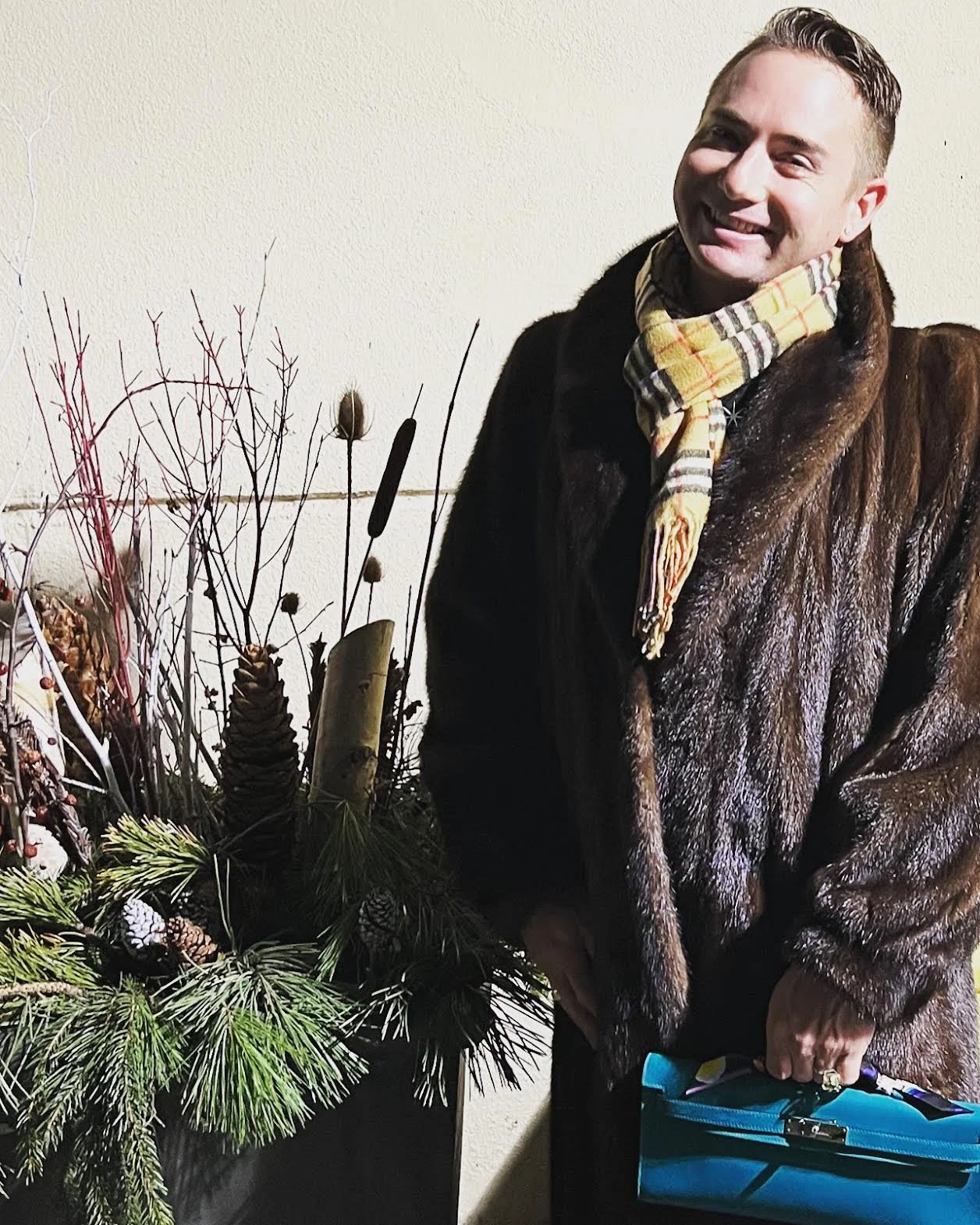 Here is Michael Kuluva with his Hermes Kelly Cut Pochette in Blue Paon with Palladium Hardware. This adorable and VERY RARE Hermes Kelly Cut Pochette is gorgeous and is like a chameleon with its color changing abilities as the blue’s hues ranges in different light. We are loving how this bag is so versatile and can fit your keys, phone, credit cards, lip balm, etc. Such a great size for a night out!