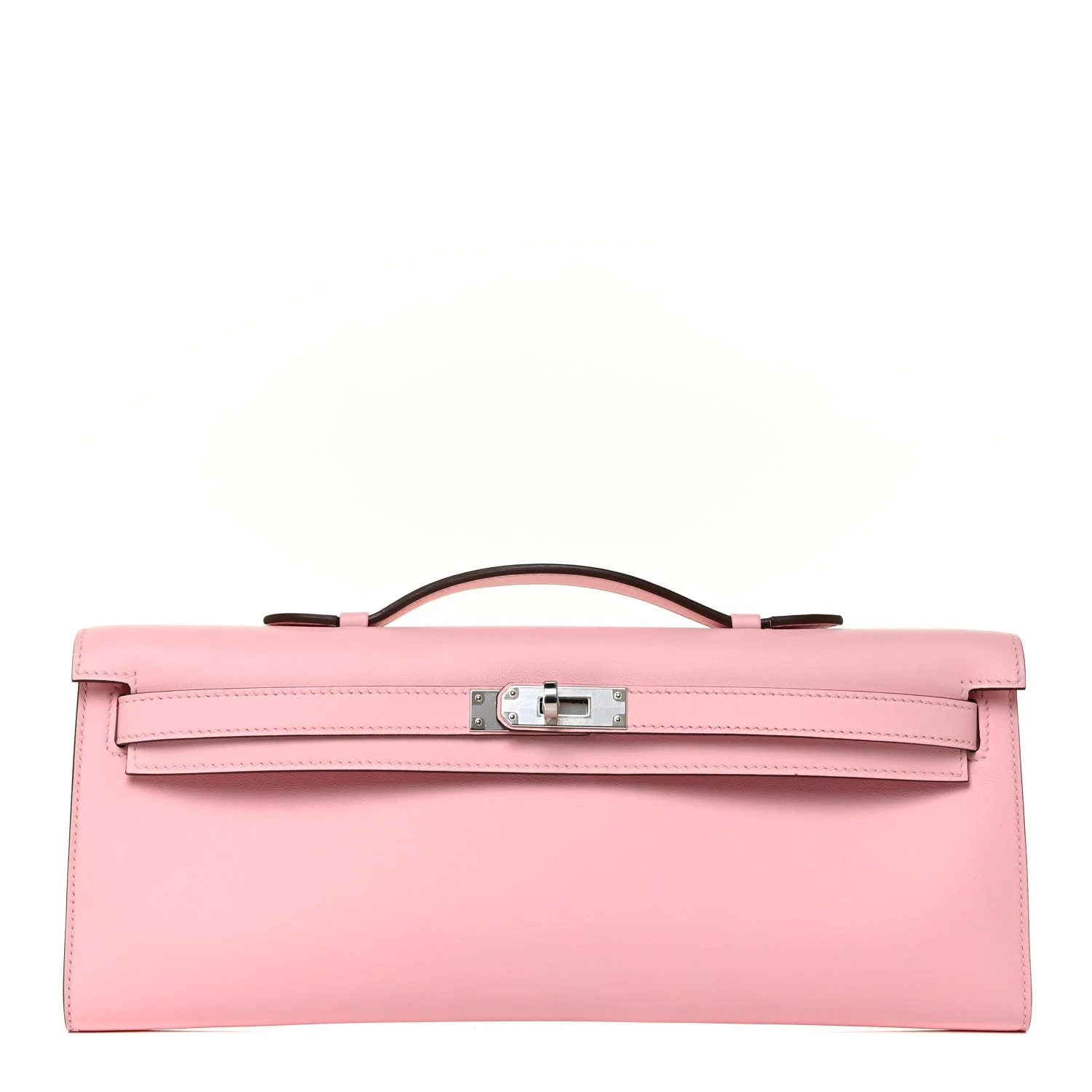 Authentic HERMES Swift Kelly Cut Clutch Pochette Rose Sakura For Sale