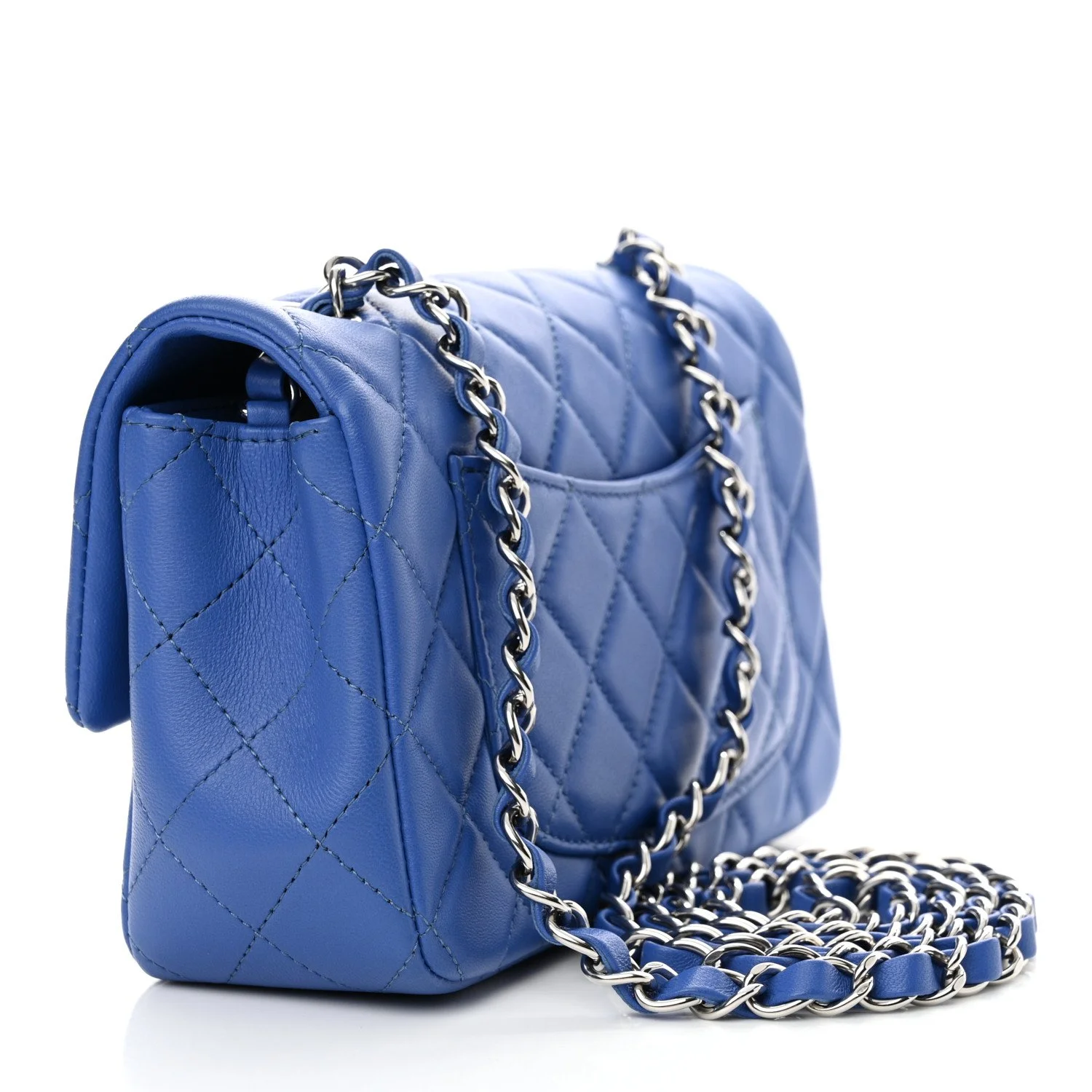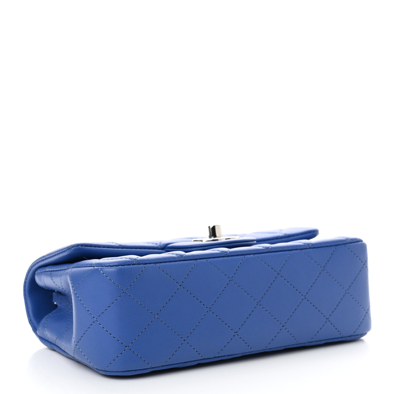 CHANEL Lambskin Quilted Mini Rectangular Flap Light Blue For Sale