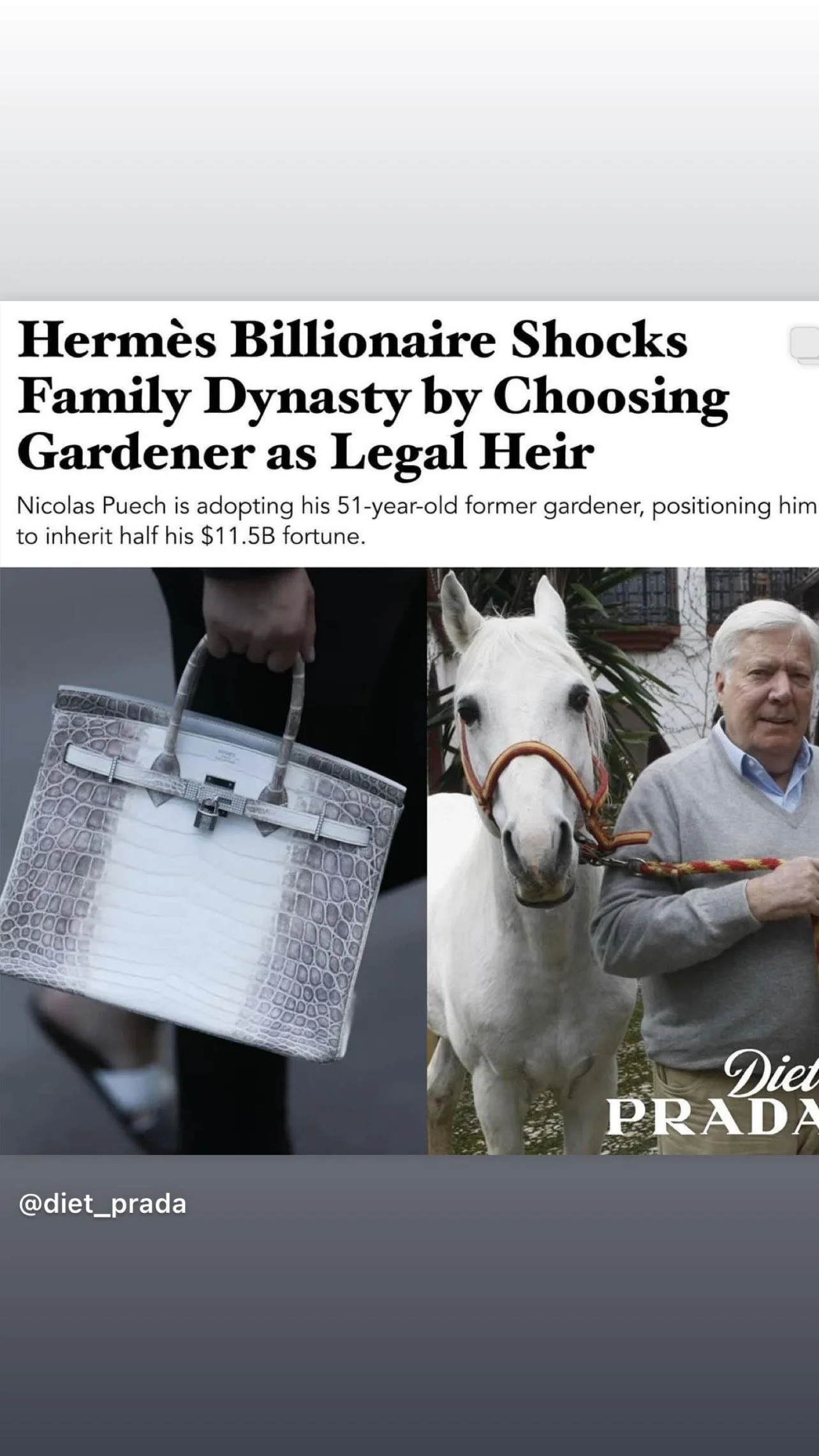 Yes, you read this headline correctly. No this is not a practical joke, as of yet. We have read it all over to make sure and we did hear it from from Diet Prada. The heir to Hermes is actually going to be leaving his Billion Dollar empire to his Gardener. Nicolas Puech is adopting 51 year old former gardener and positing him to inherit his $11.5 Billion dollar fortune. We are not sure about all the details surrounding this huge and somewhat awkward announcement. We are hoping this will impact the brand in any way or disrupt any of the Hermes operations.